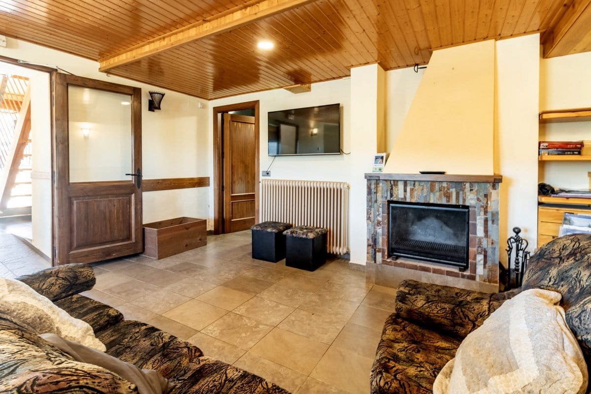 1 Living room: sofas, armchairs, TV, coffee table and other furniture, fireplace.