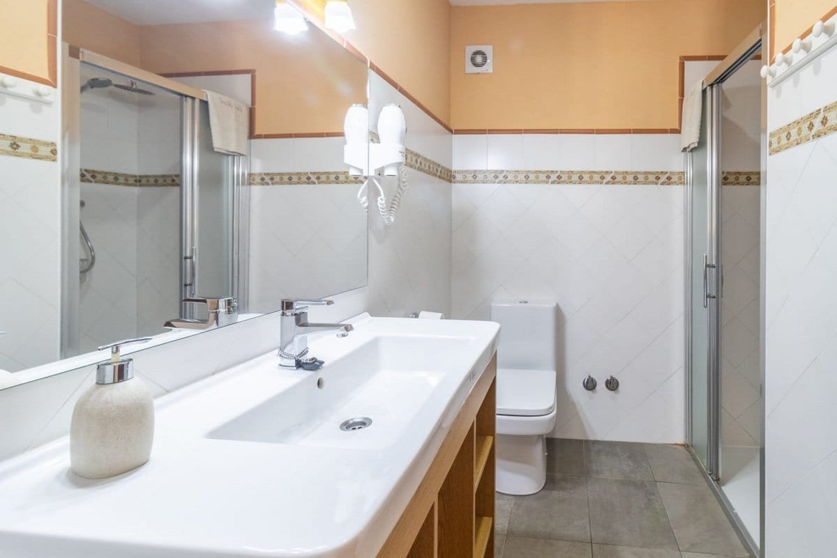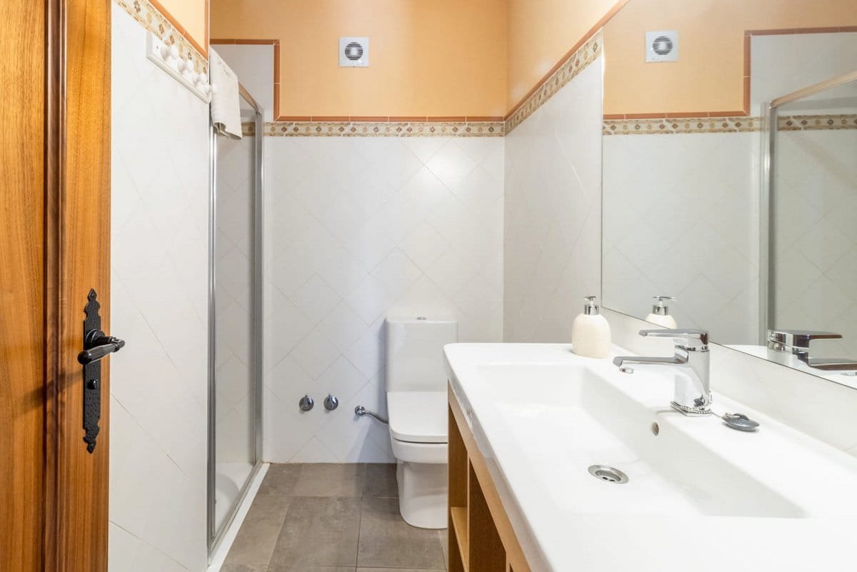 Going up to the first floor, you come to the sleeping area, where you find the other 4 bedrooms and 2 bathrooms with showers. All the bedrooms have wardrobes, bedside tables, lamps, air conditioning, and TVs.