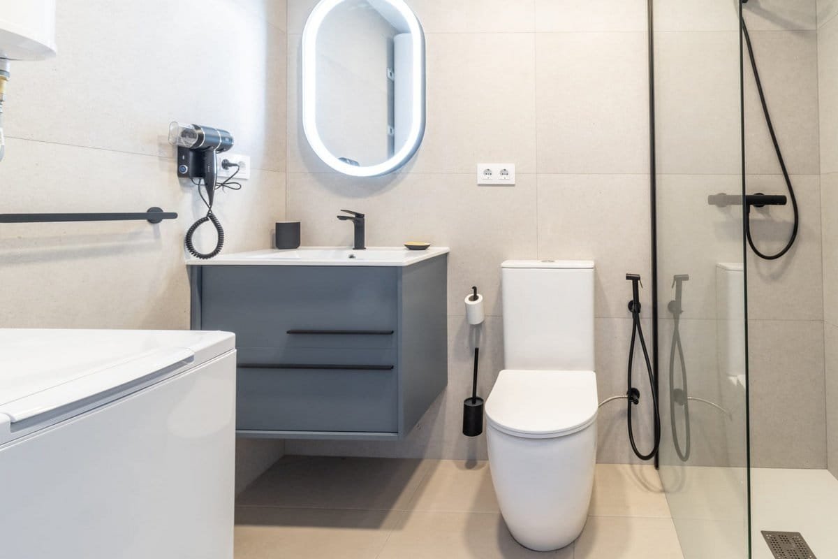 • 1 Bathroom: shower, sink and toilet. Hair-drier. Towels.