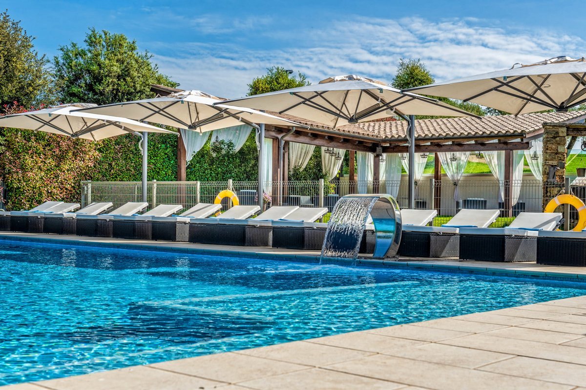 - an outdoor swimming pool (16m x 60m) with a children’s pool area, 13 sun loungers and parasols