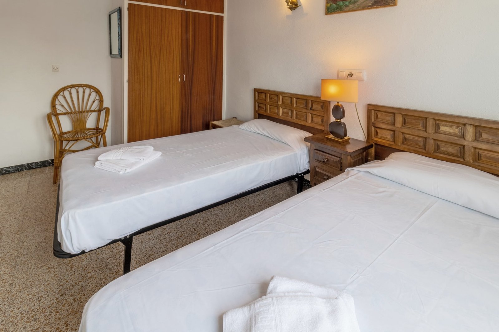 • 2 habitacions: una habitació amb llit de matrimoni, l’altra amb dos llits individuals. Armaris de paret, tauletes de nit, llums de lectura. Roba de llit.