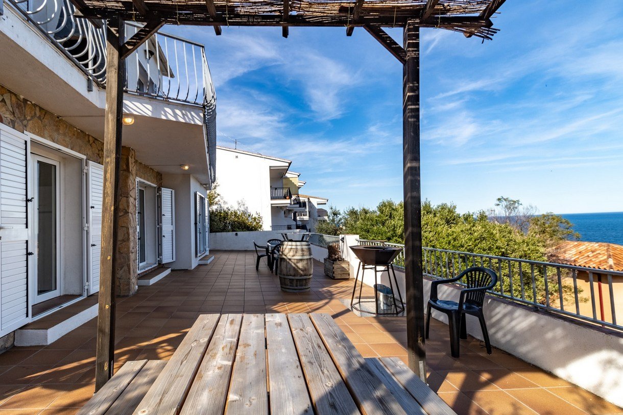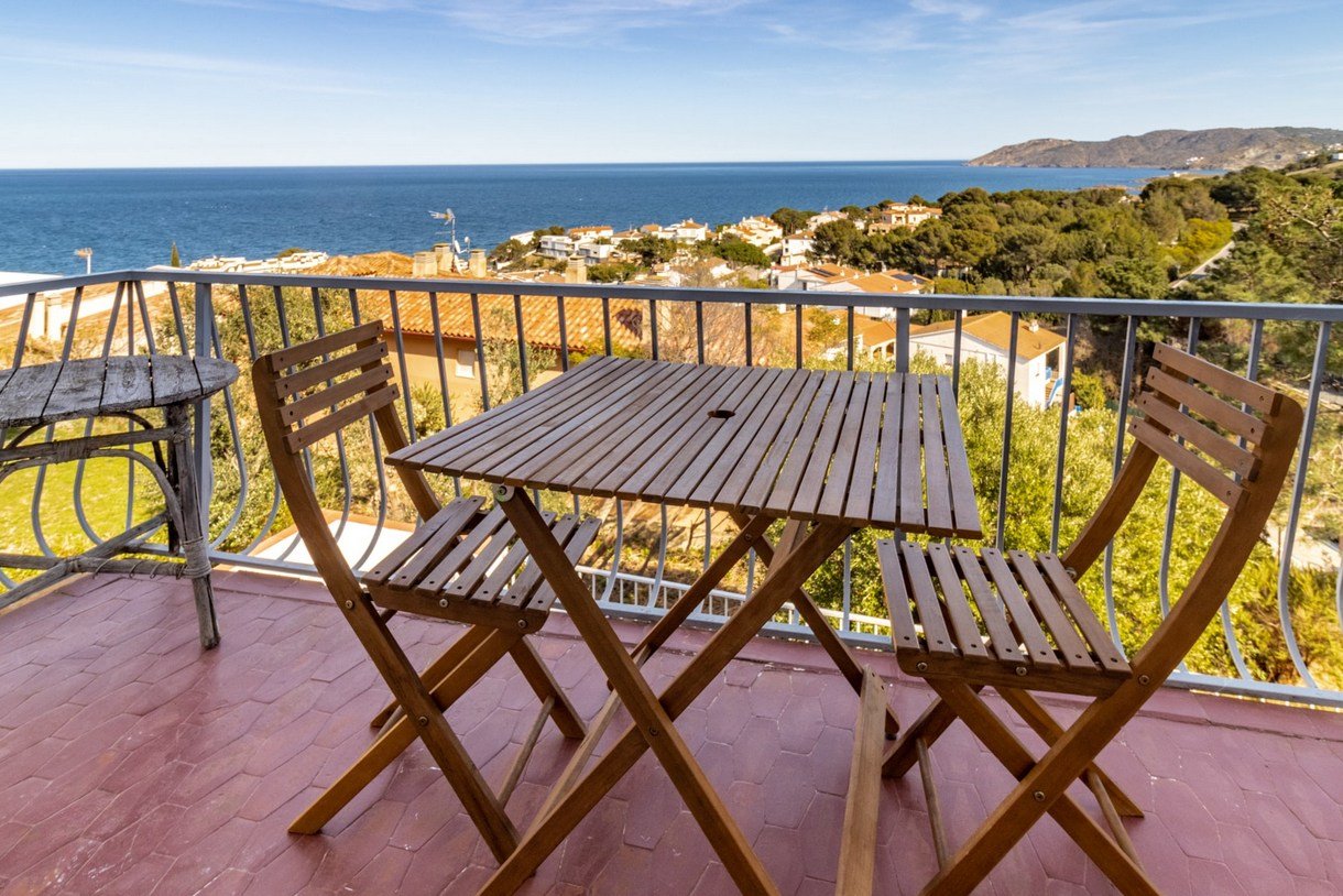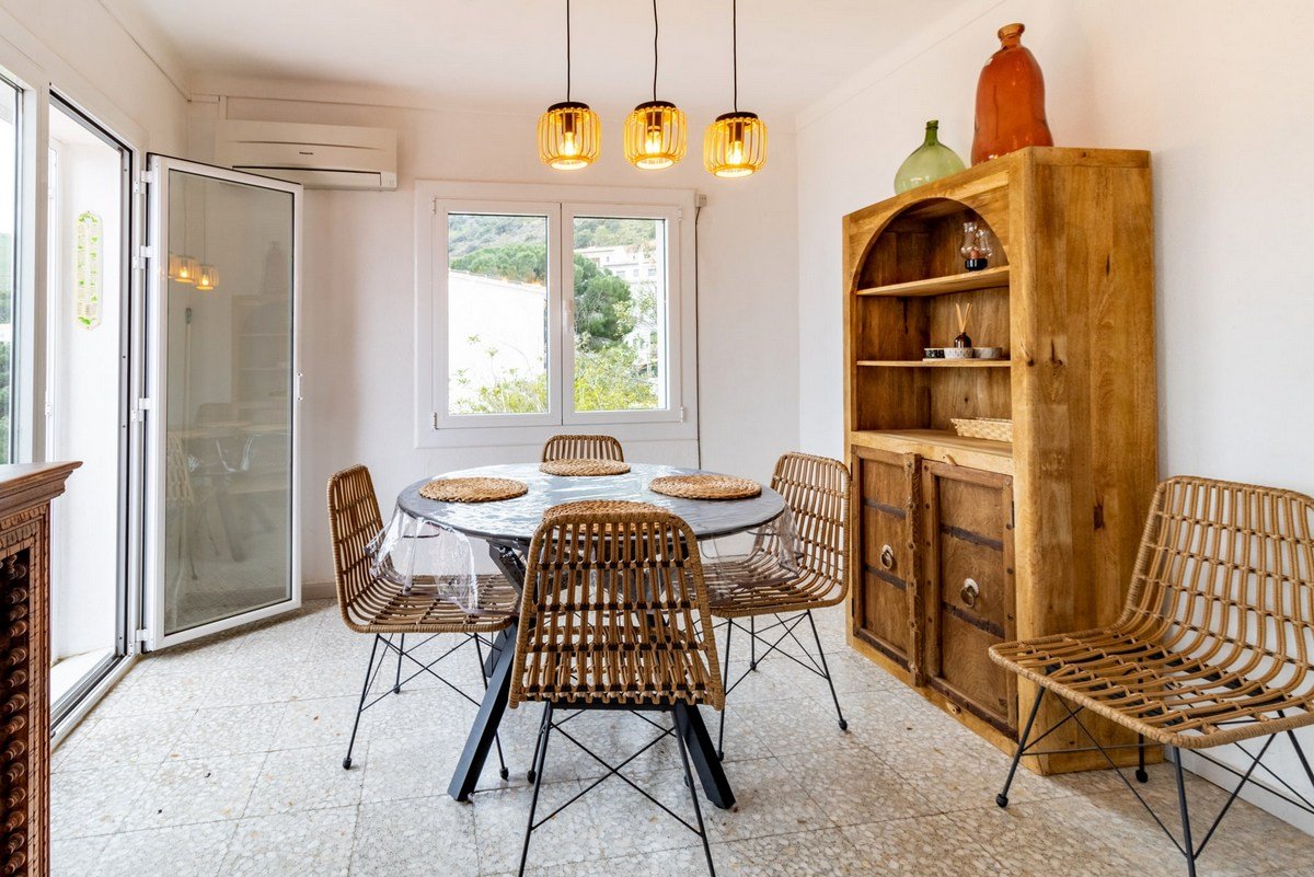 Encantadora casa aïllada amb 2 apartaments separats per a 8 persones, completament renovada i decorada amb bon gust, amb terrasses i vistes espectaculars. Ideal per a dues famílies o amics que volen gaudir de les seves vacances junts al bonic poble de Llançà a la Costa Brava. Situat a una zona tranquil·la a 900 metres de la platja Cau del Llop i a uns 2 km del poble i dels comerços.