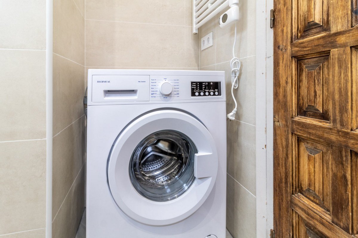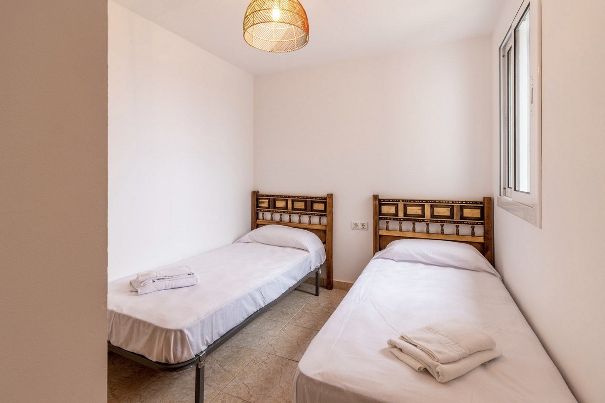 L’apartament compta amb 2 habitacions amb llit de matrimoni i armaris, una de les quals té sortida a la terrassa. Hi ha 1 bany amb dutxa, lavabo i rentadora, i un WC separat. Roba de llit i tovalloles.