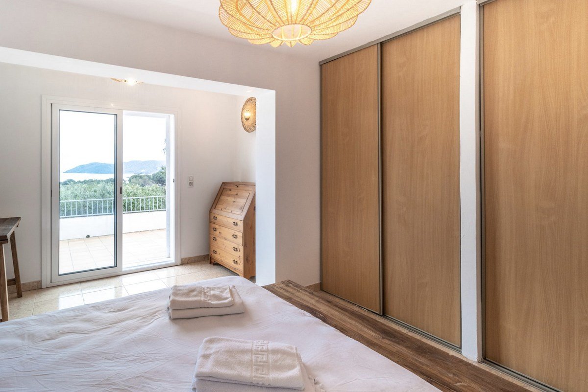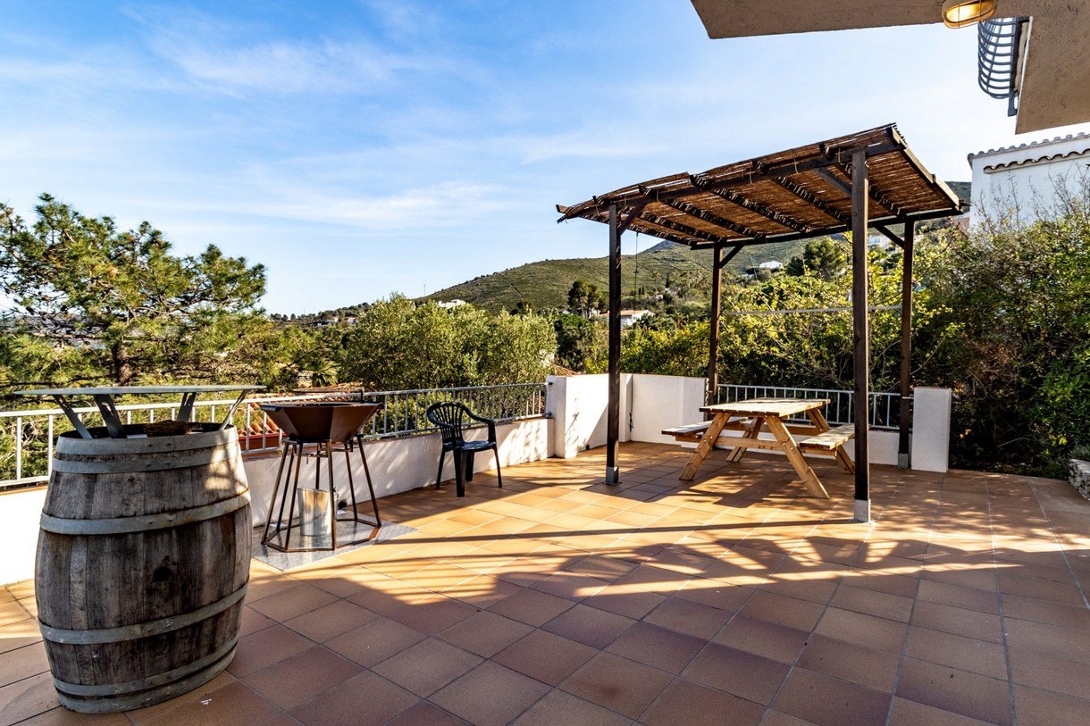 La zona exterior inclou una àmplia terrassa, porxo ombrejat amb taula i bancs de fusta, taula amb cadires, gandules i un petit jardí. Vistes espectaculars del mar. Ideal per gaudir de menjars a l’aire lliure o simplement relaxar-vos amb les impressionants vistes.